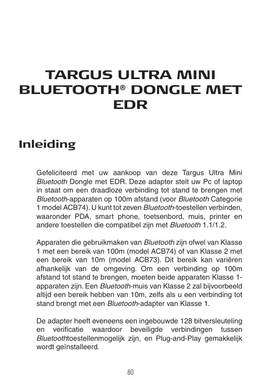 ULTRA MINI BLUETOOTH - Computeraccessoires TARGUS - Gratis gebruiksaanwijzing en handleiding
