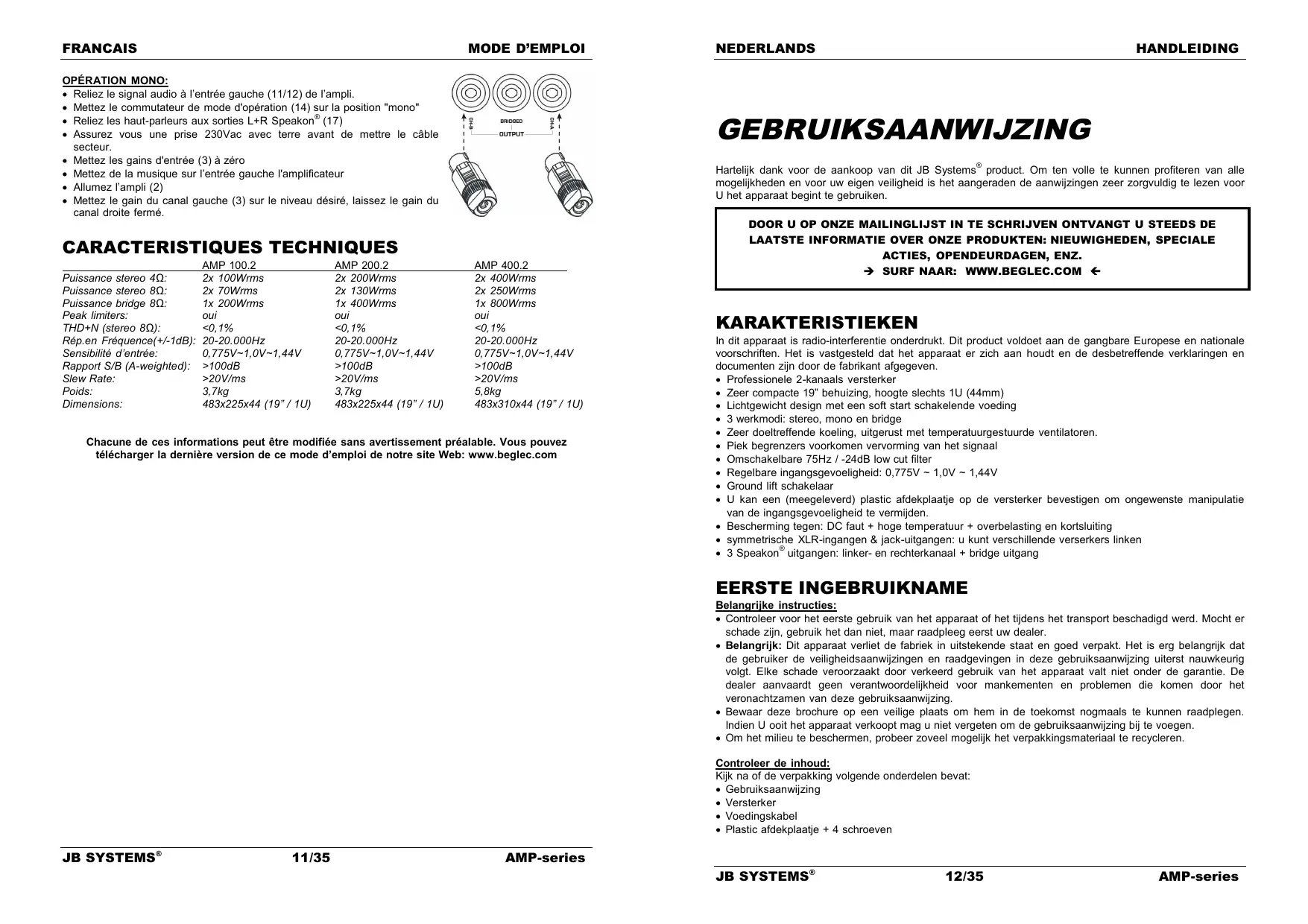 GEBRUIKSAANWIJZING AMP 400.2 BEGLEC