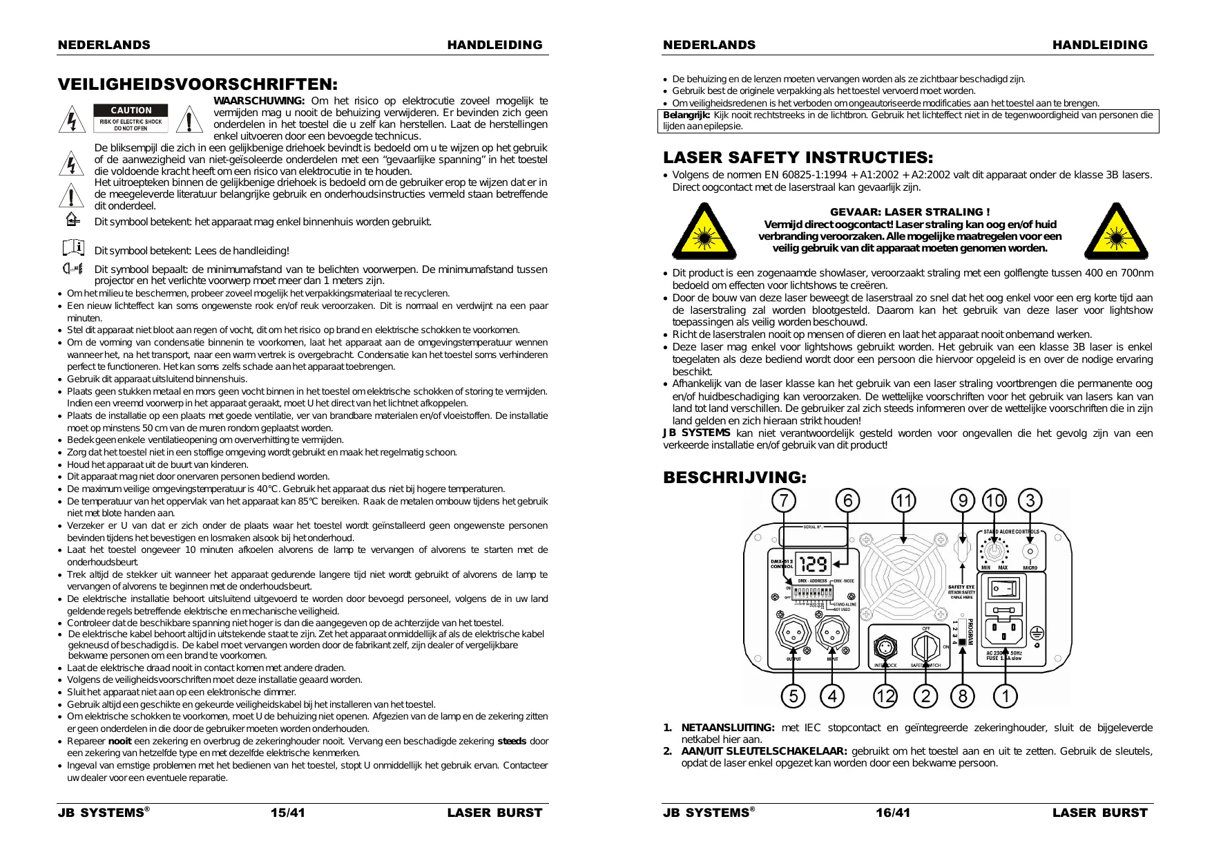 opdat de laser enkel opgezet kan worden door een bekwame persoon. JB SYSTEMS® 16/41 LASER BURST NEDERLANDS HANDLEIDING