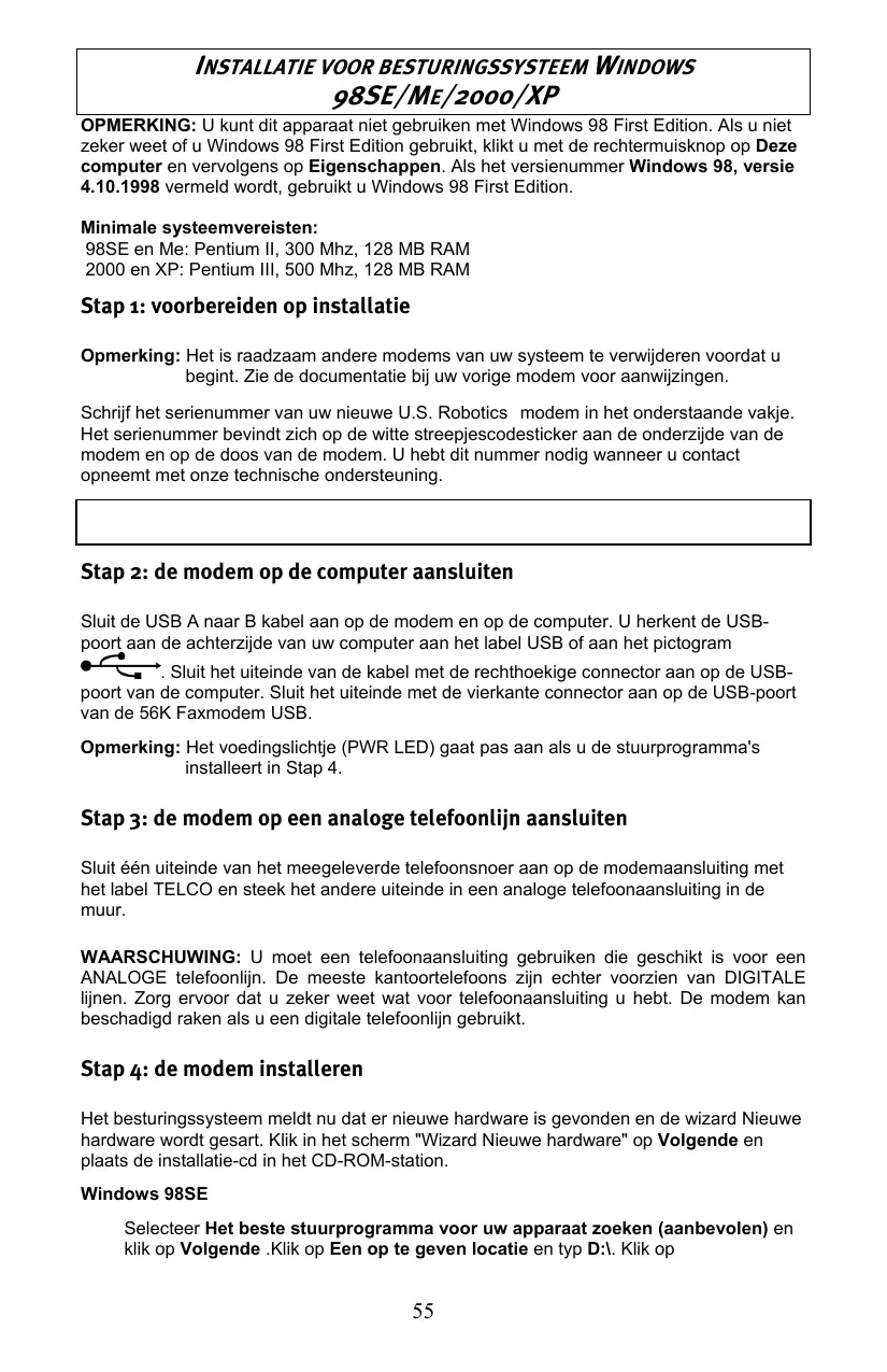 GEBRUIKSAANWIJZING 56K FAXMODEM USB US ROBOTICS