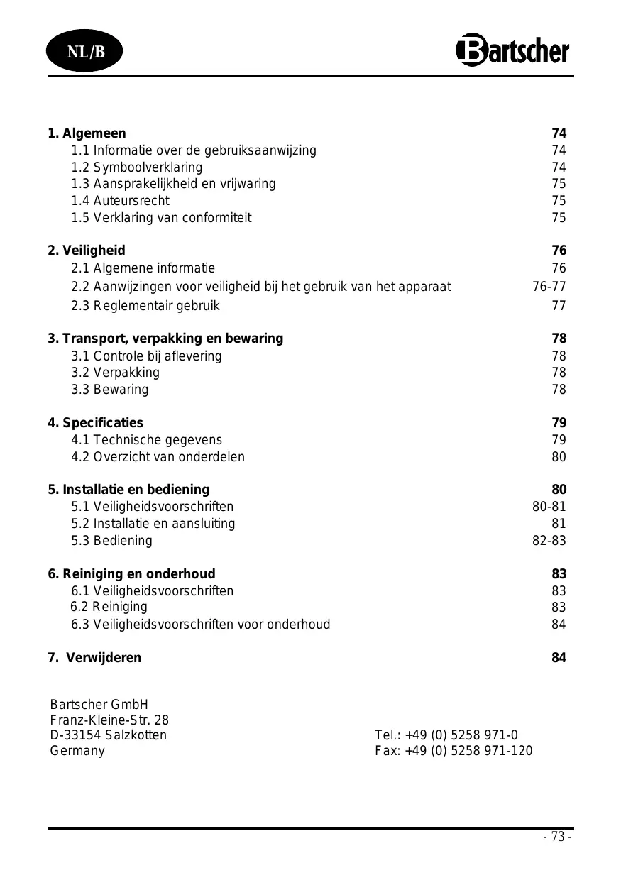 Download de handleiding voor uw Kookapparaat in PDF-formaat gratis! Vind uw handleiding 605065 - BARTSCHER en neem uw elektronisch apparaat weer in handen. Op deze pagina staan alle documenten die nodig zijn voor het gebruik van uw apparaat. 605065 van het merk BARTSCHER.