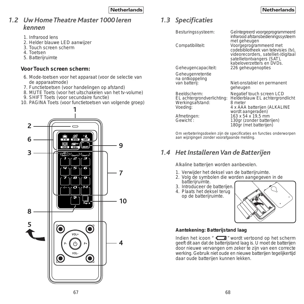 • Préprogrammation avec tutoriel • Télécommande sophistiquée Home Theatre 5 en 1 • Fonction macro grâce à 6 touches smart programmables • Fonction de contrôle de volume TV “ punch through ” • Fonctions Teletext et Fastext disponibles pour TV numérique • Coupure automatique (mode Veille) pour économiser les piles