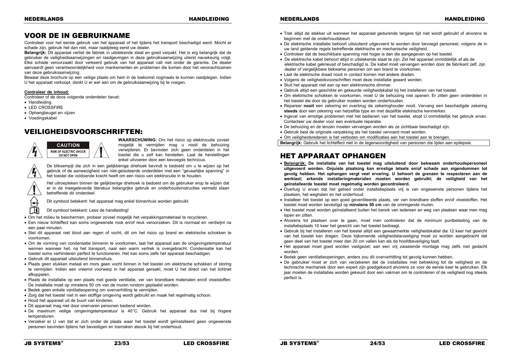 Hartelijk dank voor de aankoop van dit JB Systems® product. Om ten volle te kunnen profiteren van alle mogelijkheden en voor uw eigeneiligkeit, gelieve de aanwijzingen zeer zorgvuldig te lezen voor U begint het apparaat te gezruiken.