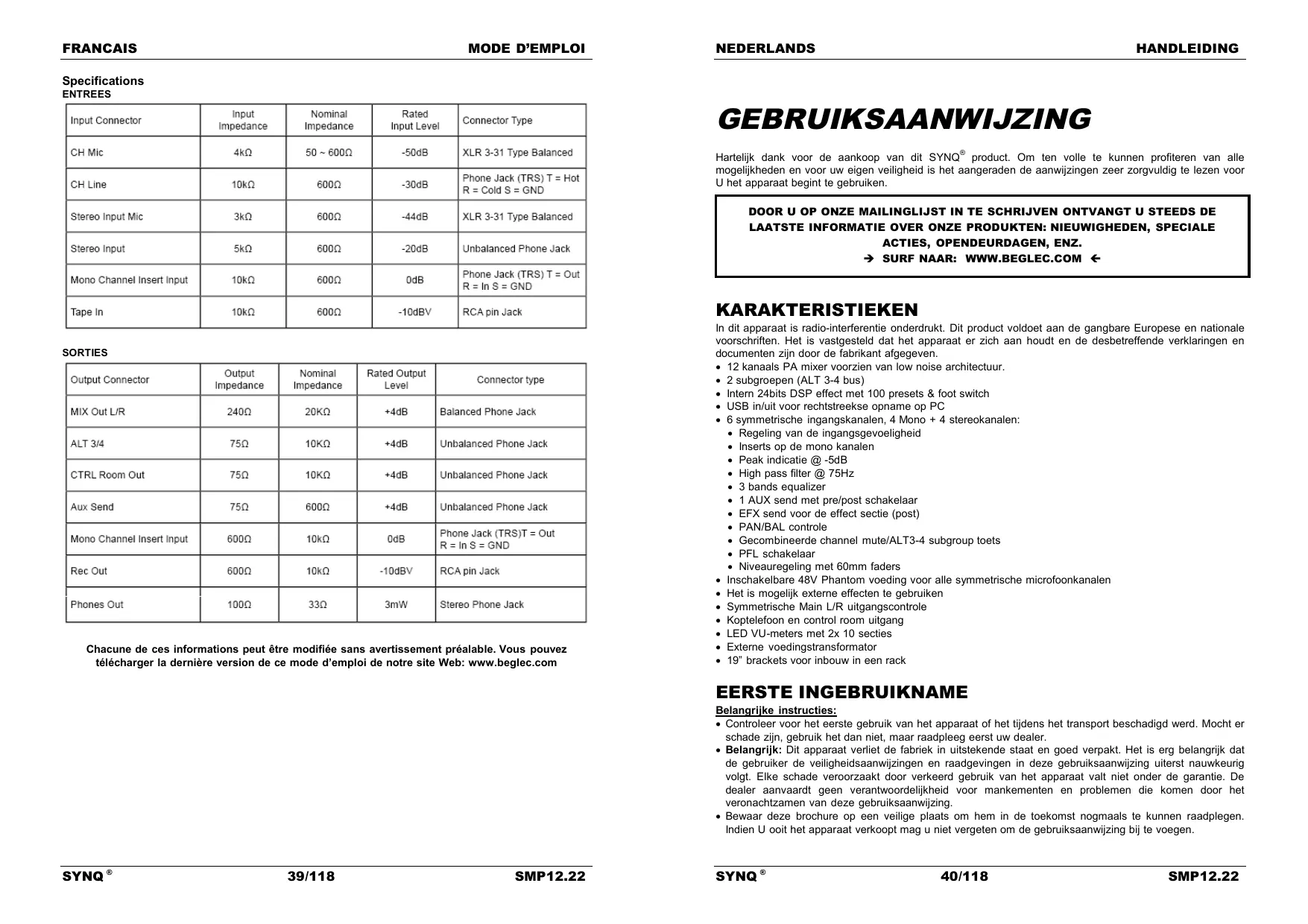 GEBRUIKSAANWIJZING SMP 12.22 SYNQ AUDIO RESEARCH