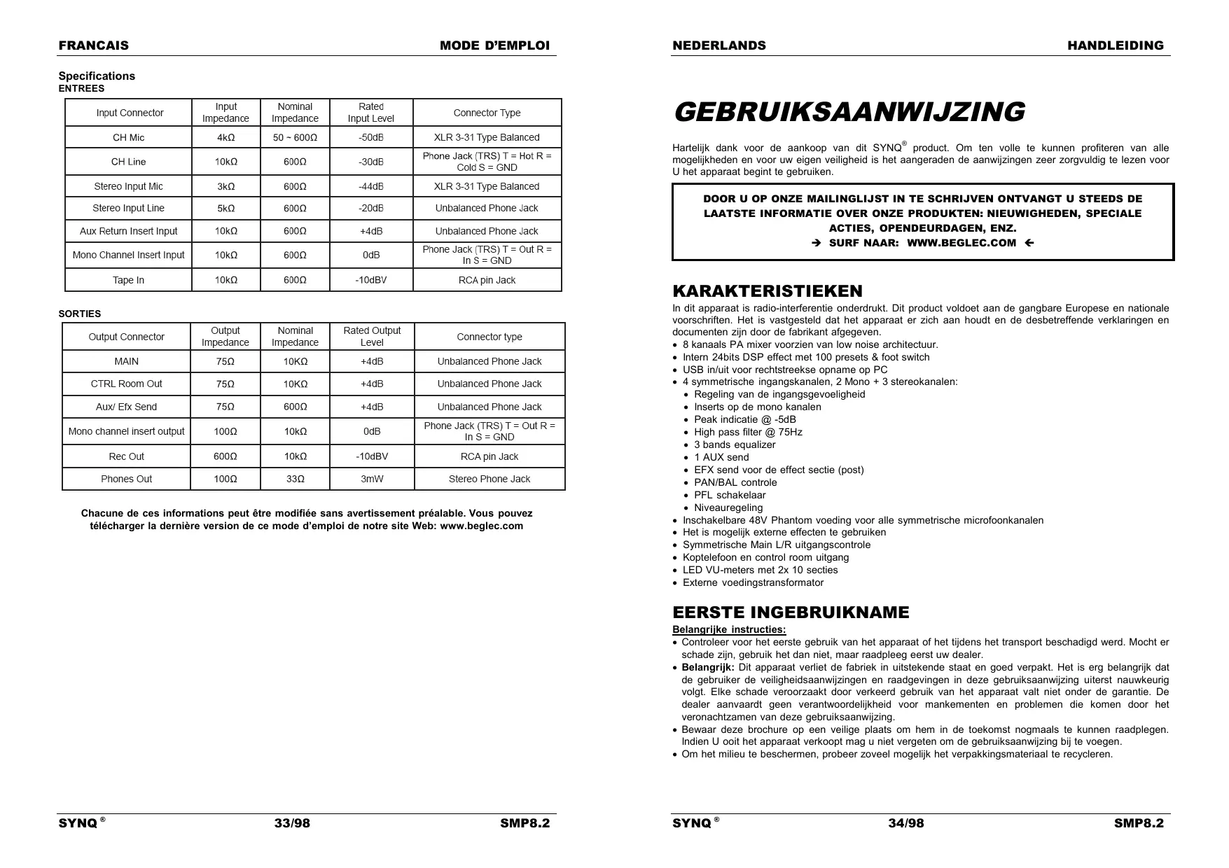 GEBRUIKSAANWIJZING SMP 8.2 SYNQ AUDIO RESEARCH
