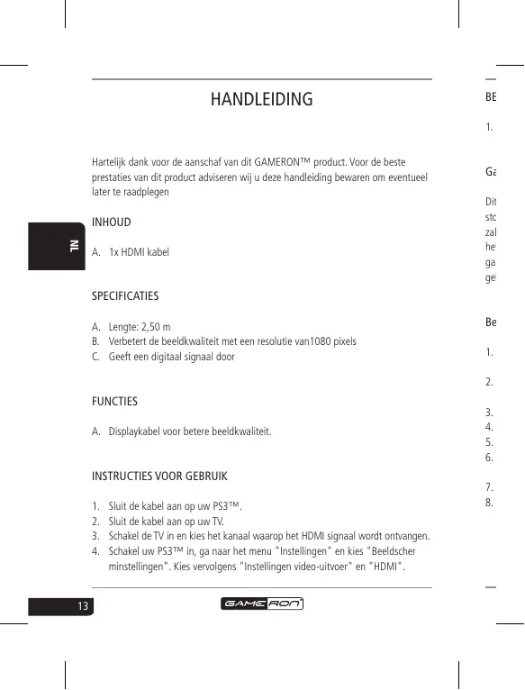 GEBRUIKSAANWIJZING HDMI CABLE FOR PS3 AWG