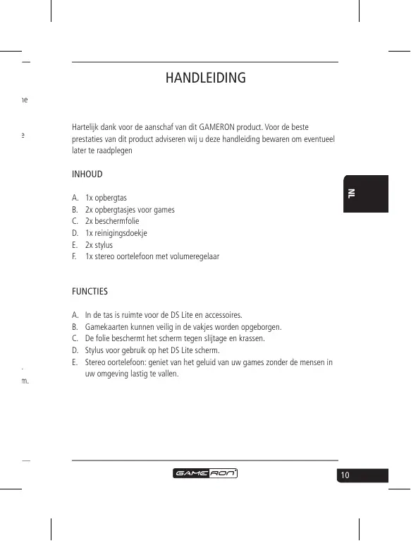 und hwierigame.com. Hartelijk dank voor de aanschaf van dit GAMERON product. Voor de beste prestaties van dit product adviseren wij u deze handleiding bewaren om eventueel later te raadplegen INHOUD