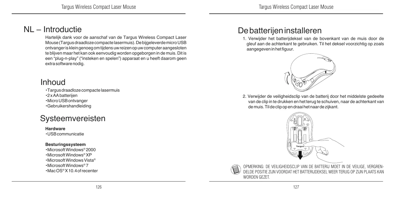 GEBRUIKSAANWIJZING WIRELESS COMPACT LASER MOUSE TARGUS