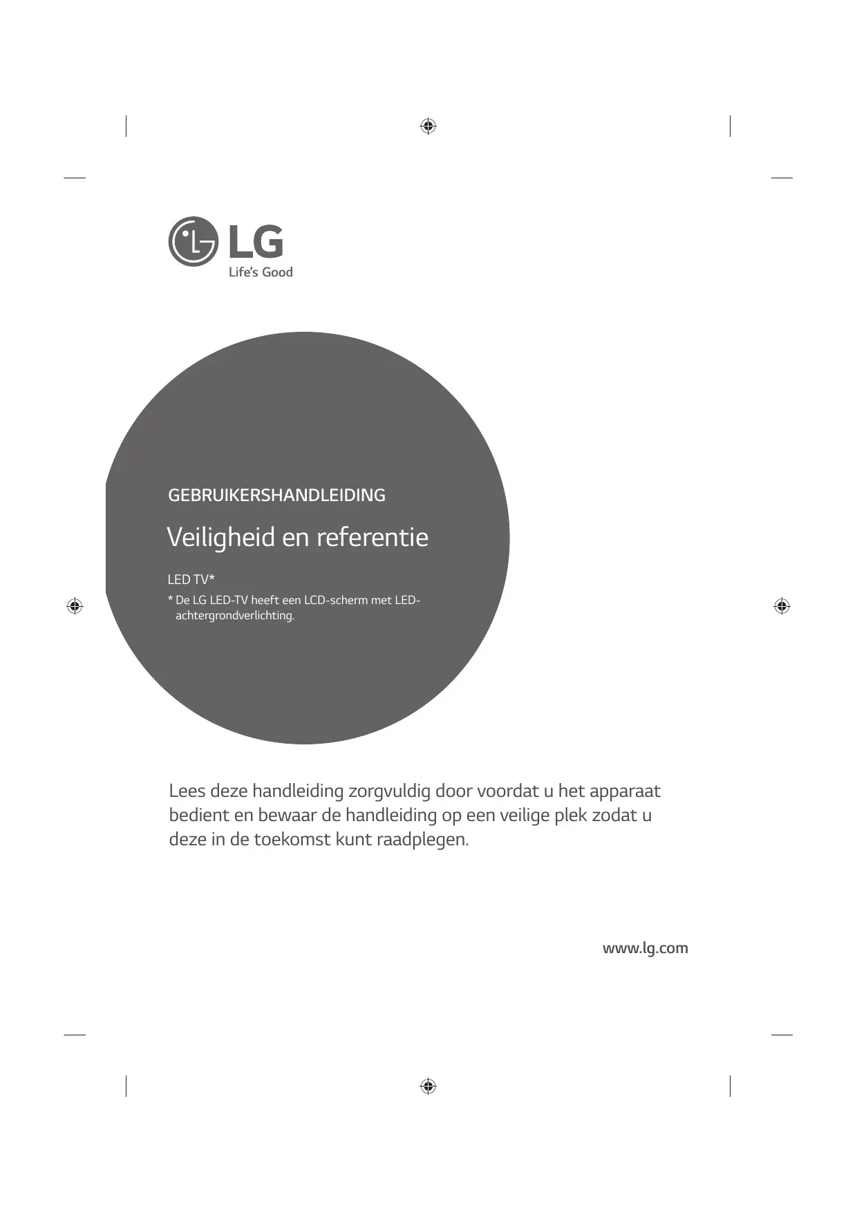 - De LG LED-TV heeft een LCD-scherm met LEDachtergrondverlichting. Lees deze handleiding zorgvuldig door voordat u het apparaat bedient en bewaar de handleiding op een veilige plek zodat u deze in de toekomst kunt raadplegen. www.lg.com Veiligheidsinstructies Lees deze veiligheidsmaatregelen zorgvuldig door voordat u het product gebruikt. WAARSCHUWING Plaats de TV en afstandsbediening niet in de volgende omgevingen: t Plekken die blootstaan aan direct zonlicht t Vochtige ruimten, zoals een badkamer t In de buurt van een warmtebron, zoals een kachel, of andere apparaten die warmte produceren t In de buurt van keukenwerkbladen of luchtbevochtigers, waar ze kunnen worden blootgesteld aan stoom of olie t Plekken die blootstaan aan regen of wind t In de buurt van voorwerpen die met vloeistof zijn gevuld, zoals bloemenvazen Indien u deze waarschuwing negeert, loopt u het risico op brand, elektrische schokken, storingen of vervorming van het product. Sluit het netsnoer op een geaard stopcontact aan. (Behalve in het geval van niet-geaarde apparaten.) Als u dit niet doet, is dat levensgevaarlijk; er bestaat elektrocutiegevaar, u kunt gewond raken. Steek de stekker van het netsnoer stevig in het stopcontact. Als de stekker niet goed in het stopcontact zit, kan er brand uitbreken. Let op dat net netsnoer niet in contact komt met hete voorwerpen, zoals een kachel. Dit kan brand of een elektrische schok veroorzaken. Plaats geen zware voorwerpen, of het product zelf, op het netsnoer. Dit kan brand of een elektrische schok tot gevolg hebben. NEDERLANDS Plaats het product niet op plekken waar veel stof is. Dit kan brand veroorzaken. De stekker van het netsnoer is de stroomonderbreker. De stekker moet bedrijfsklaar blijven. Raak de stekker niet met natte handen aan. Laat de stekker volledig drogen als deze nat is en reinig de stekker als hier stof op zit. Kijk uit met vocht. Teveel vocht is levensgevaarlijk; er bestaat elektrocutiegevaar, u kunt gewond raken. Zorg dat de antennekabel buitenshuis een bocht maakt alvorens het huis in te lopen, om te voorkomen dat er regen binnenkomt. Als u dit niet doet, kan waterschade in het product ontstaan, waardoor u risico loopt op elektrische schokken. Bevestig de TV niet aan de muur door middel van het netsnoer en de signaalkabels aan de achterkant van het toestel. Dit kan brand of een elektrische schok veroorzaken. Sluit niet te veel elektrische apparaten op één meervoudige contactdoos aan. Dit kan leiden tot brand als gevolg van oververhitting.