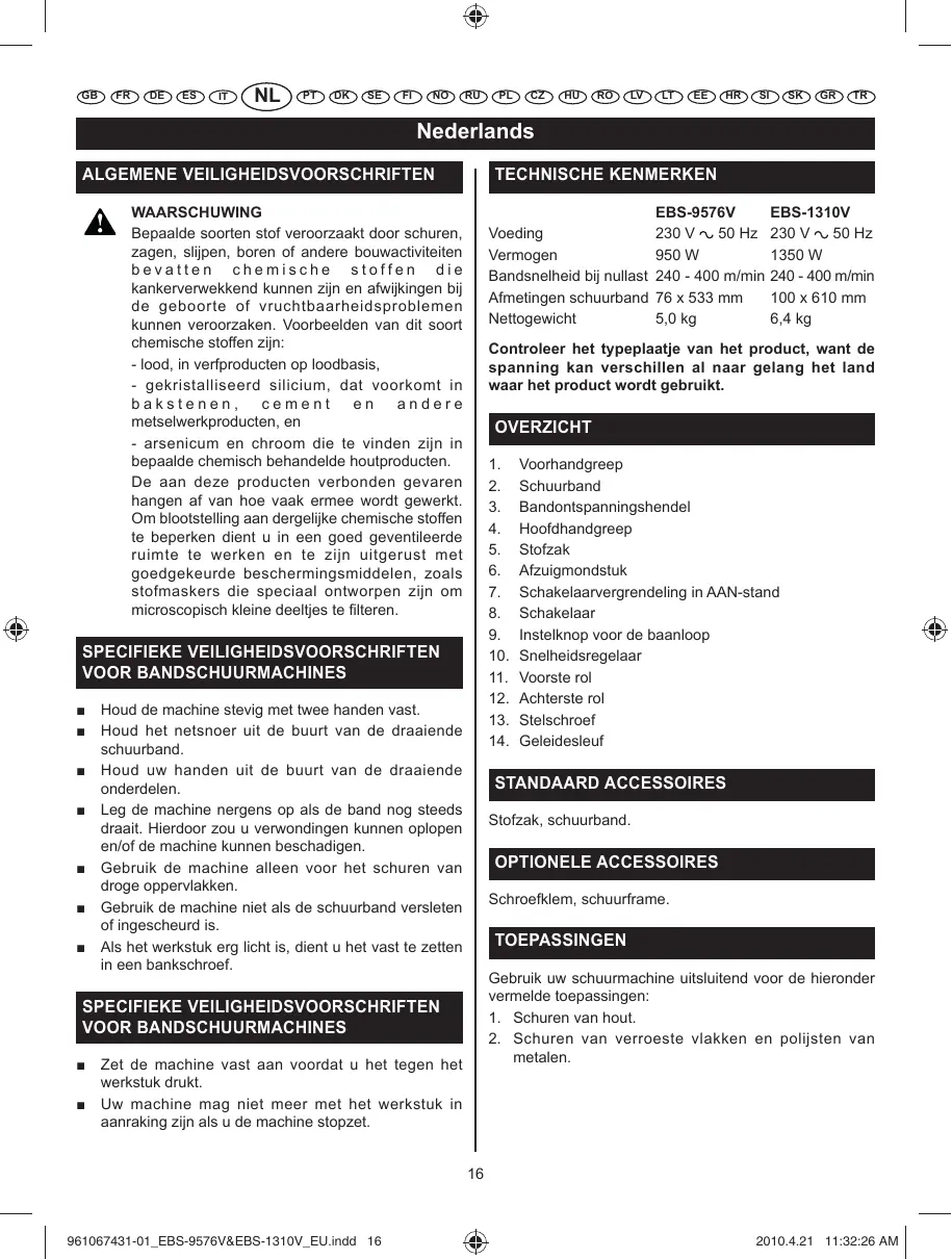 Download de handleiding voor uw in PDF-formaat gratis! Vind uw handleiding EBS9576VFHG - RYOBI en neem uw elektronisch apparaat weer in handen. Op deze pagina staan alle documenten die nodig zijn voor het gebruik van uw apparaat. EBS9576VFHG van het merk RYOBI.