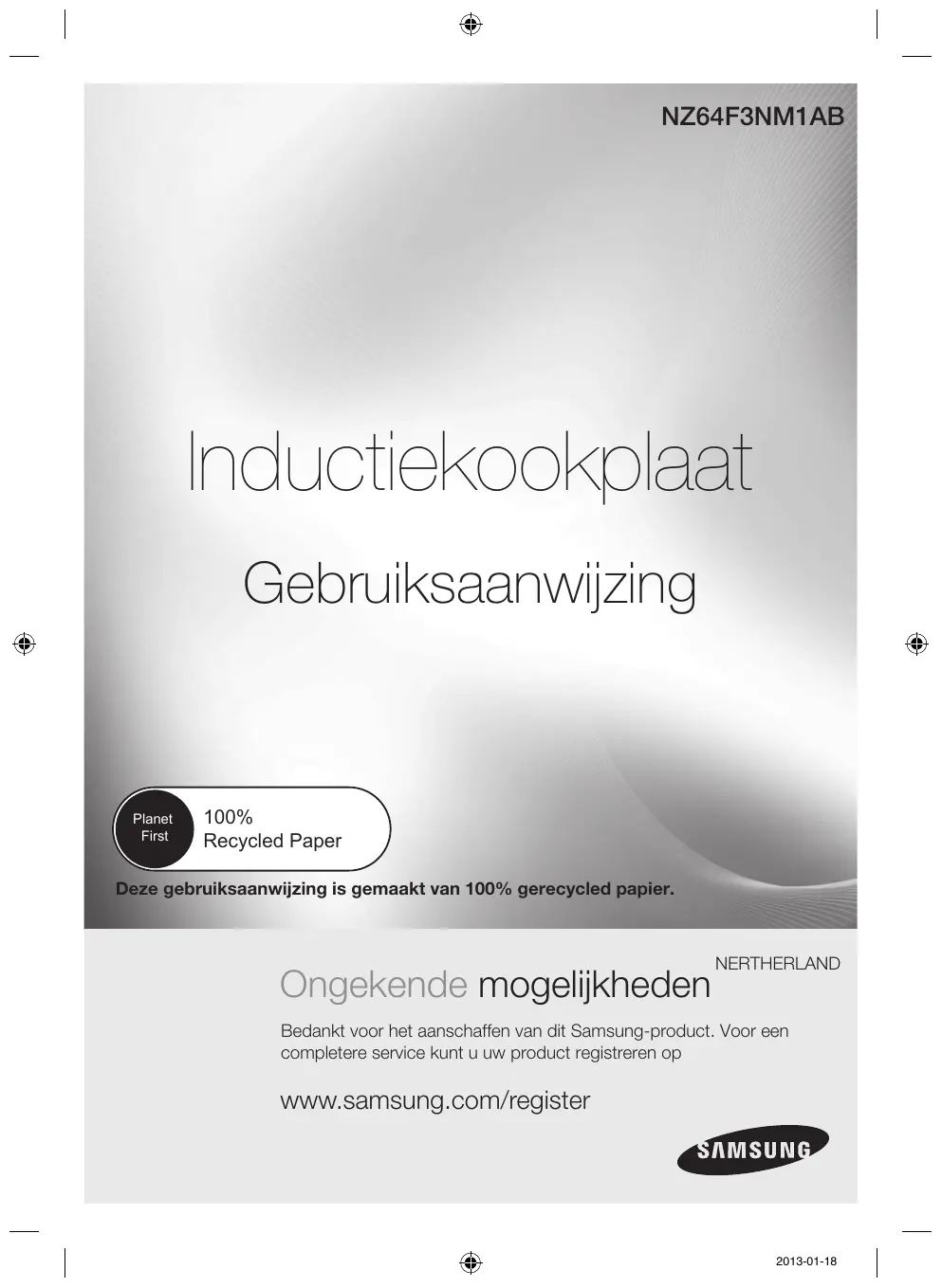 NERTHERLAND Bedankt voor het aanschaffen van dit Samsung-product. Voor een completere service kunt u uw product registreren op