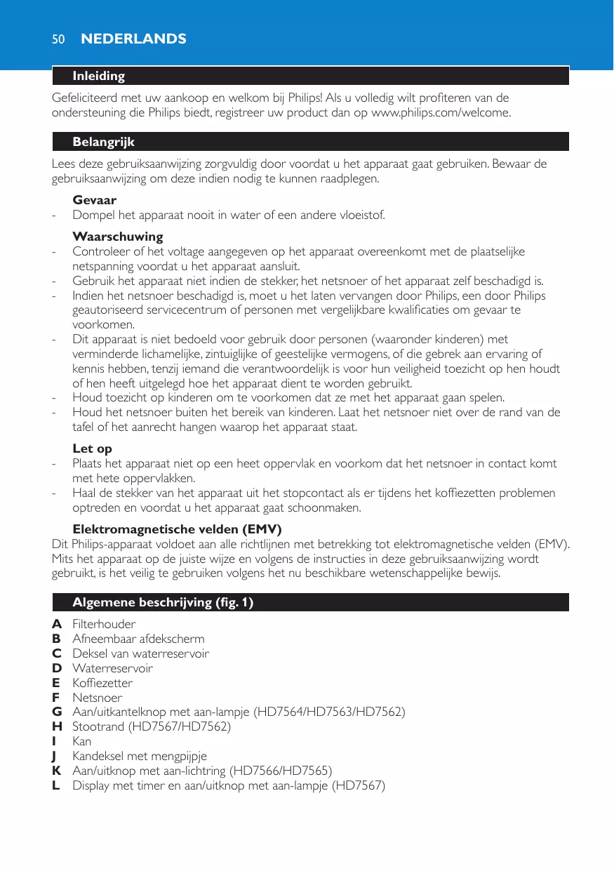 GEBRUIKSAANWIJZING HD 7546/20 PHILIPS