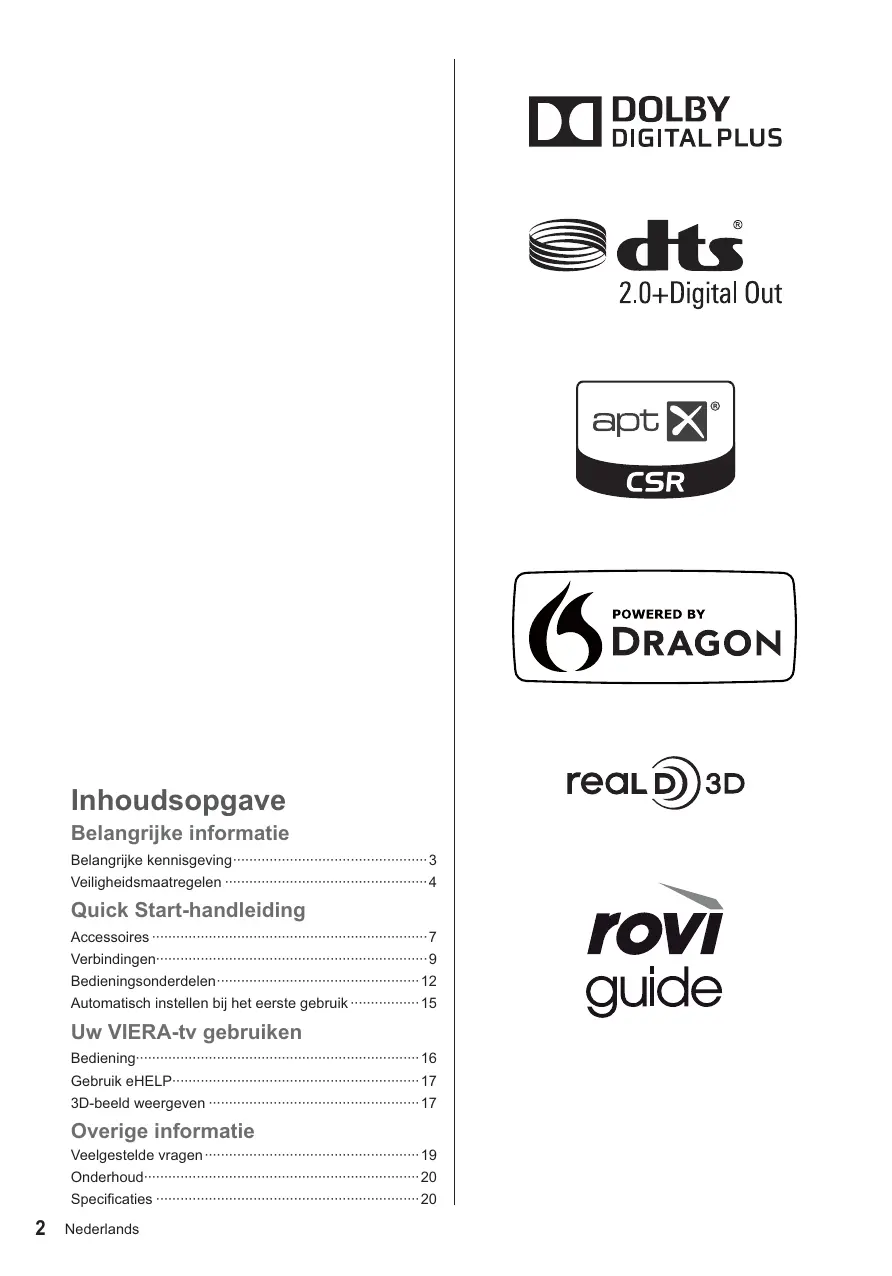 CSR POWERED BY DRAGON Inhoudsopgave real D) 3D Belangrijke informatie Belangrike kennisgeving-… Veiligheidsmaatregelen