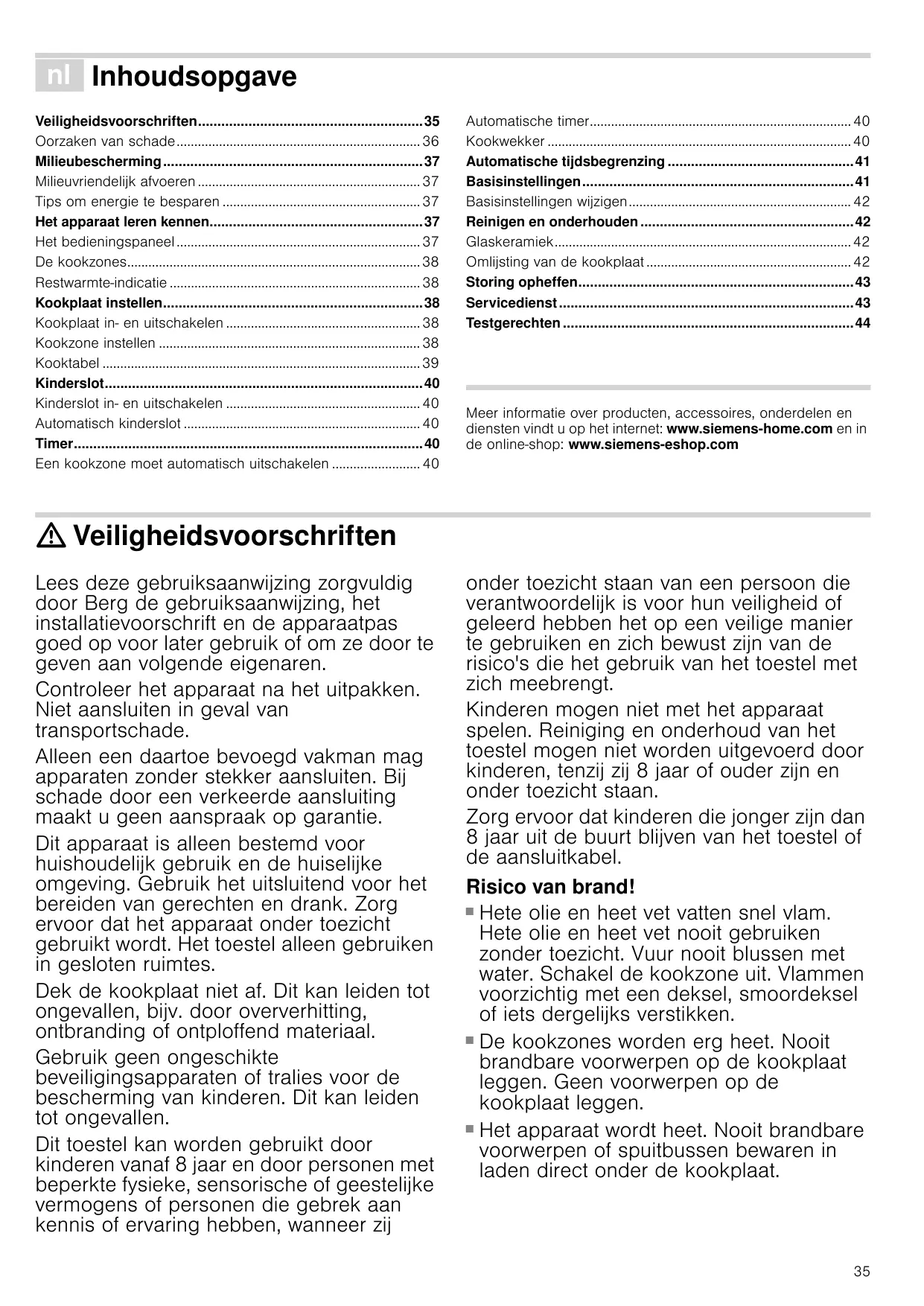 Meer informatatie over producten, accessoires, onderdelen en Diensten vindt u op het internet: www.siemens-home.com en in de online-shop: www.siemens-eshop.com