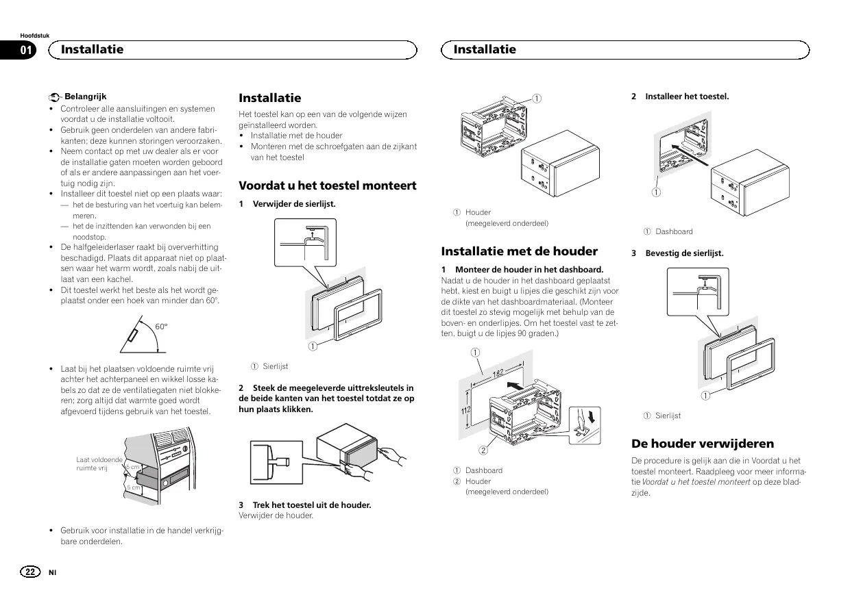 % Fixation de l’appareil sur le support de montage radio d’usine.