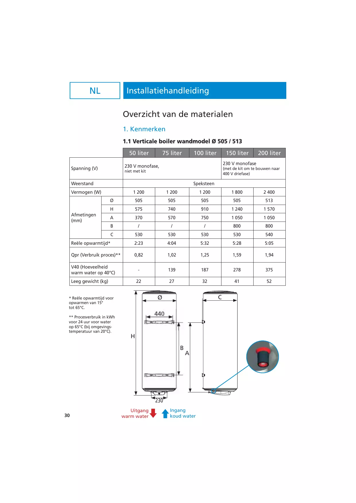 NL Installatiehandleiding 1.2 Verticale boiler op voet 200 liter
