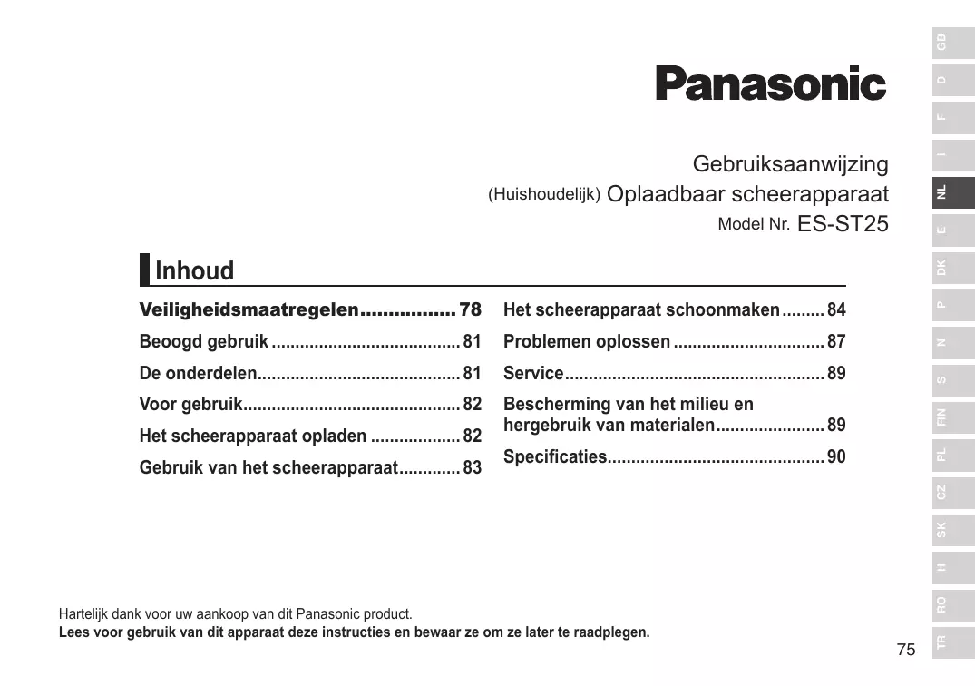 ES-ST25KS803 - Elektrisch scheerapparaat PANASONIC - Gratis gebruiksaanwijzing en handleiding