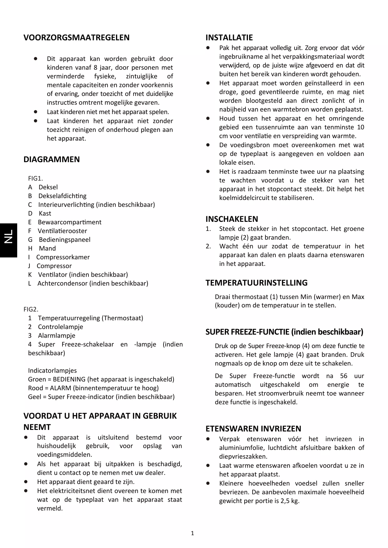 Vrieskist Gebruiksaanwijzing