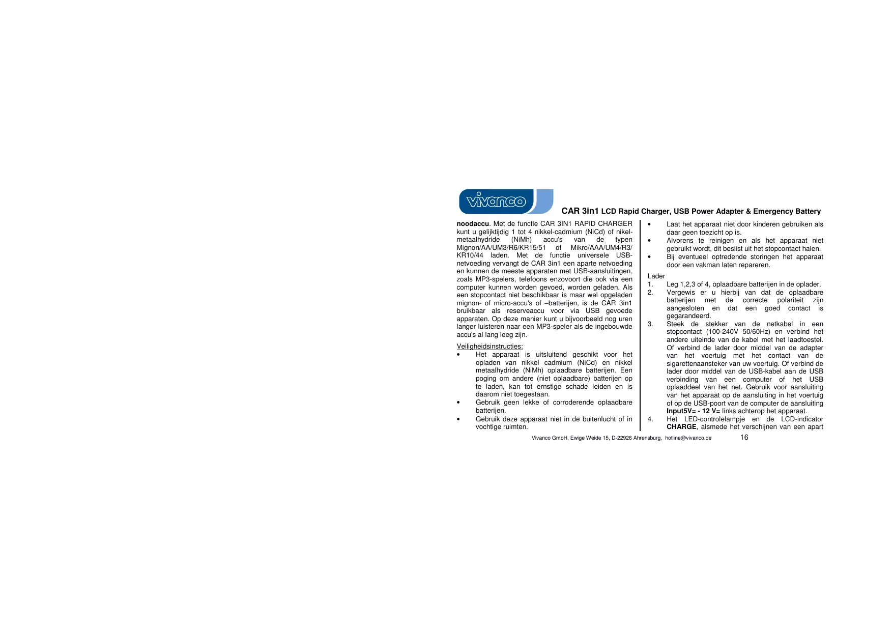 Vind de handleiding van het apparaat gratis USB POWER ADAPTER & EMERGENCY BATTERY VIVANCO in PDF-formaat.