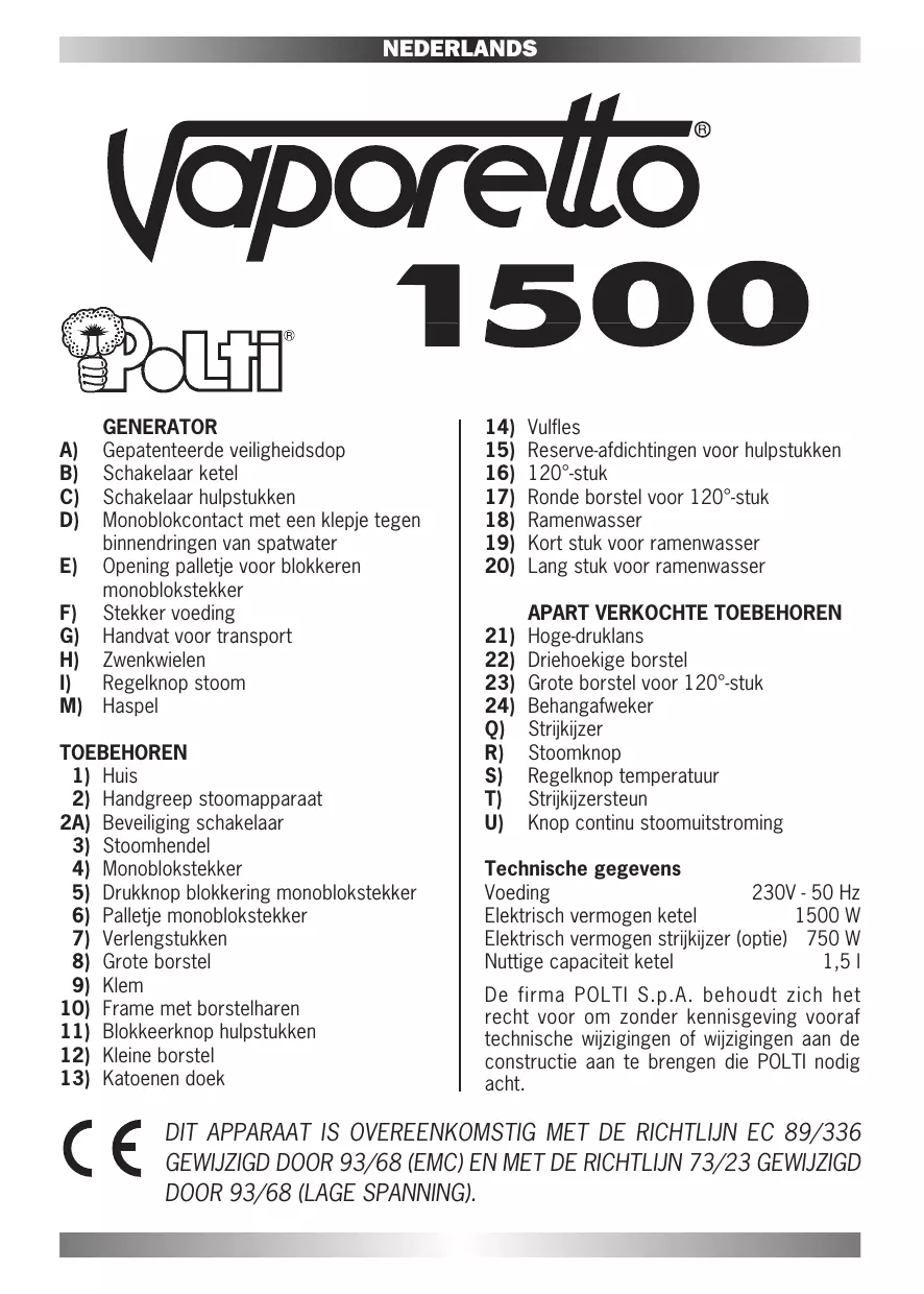 Vind de handleiding van het apparaat gratis 1500 VAPORETTO in PDF-formaat.