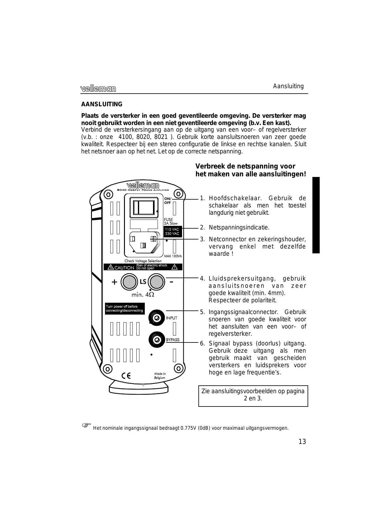 Zie aansluitingsvoorbeelden op pagina 2 en 3.