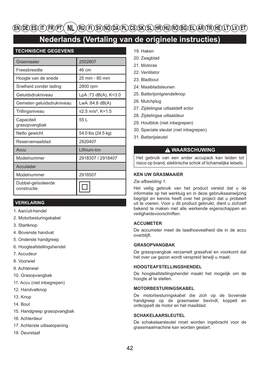 GEBRUIKSAANWIJZING GD60LM46HP - GD60LM46SPK4 - GD60LM51SPK4 GREENWORKS