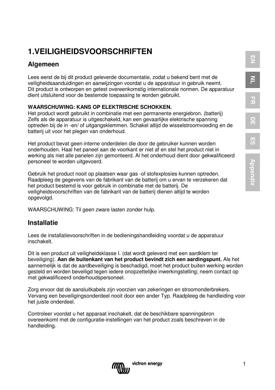 GEBRUIKSAANWIJZING 24-1600 230V VICTRON ENERGY