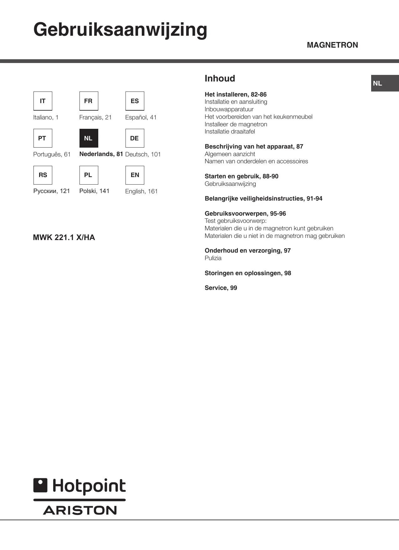 GEBRUIKSAANWIJZING MWA 121.1 X/HA HOTPOINT