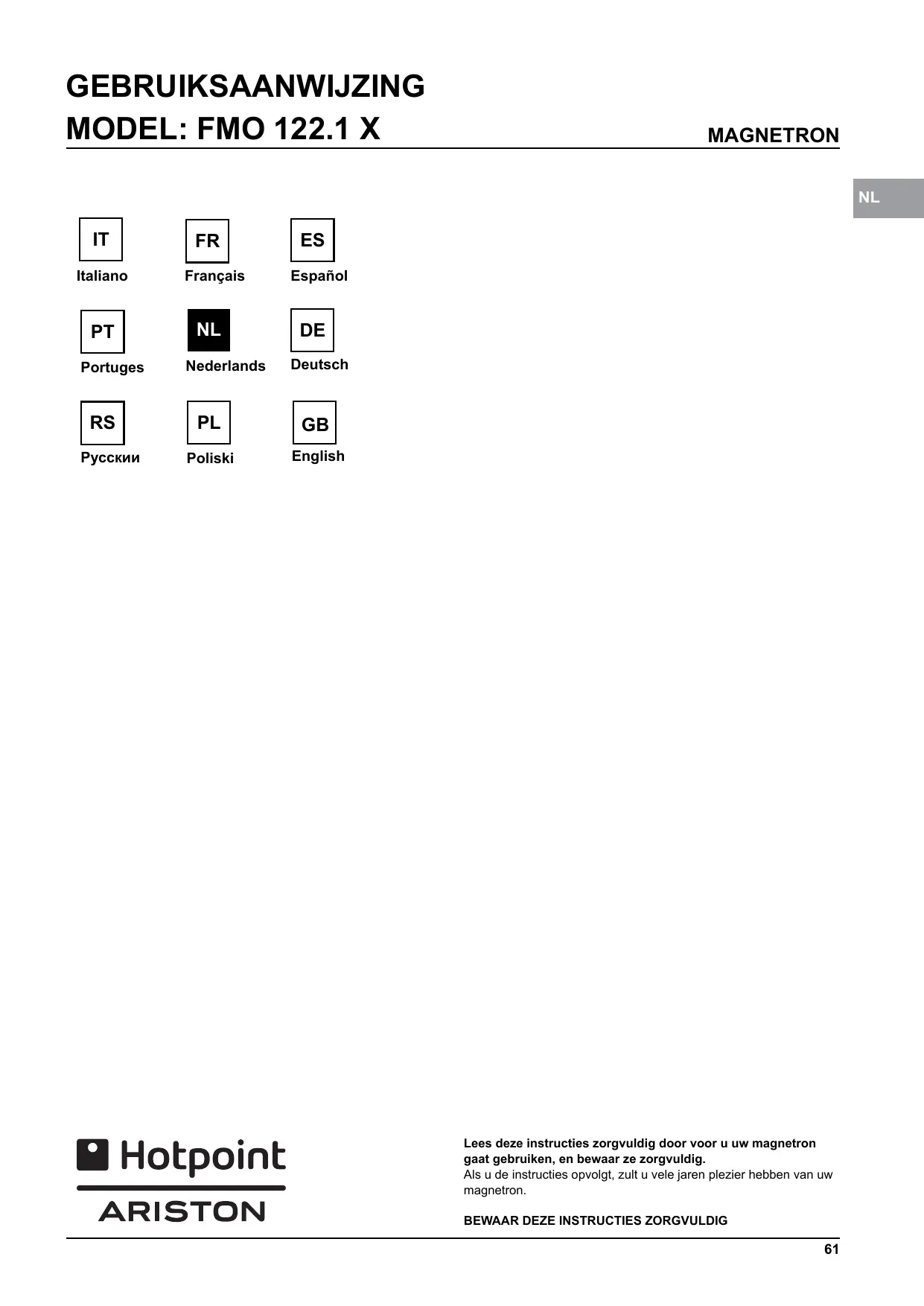 GEBRUIKSAANWIJZING MD544IXHA HOTPOINT