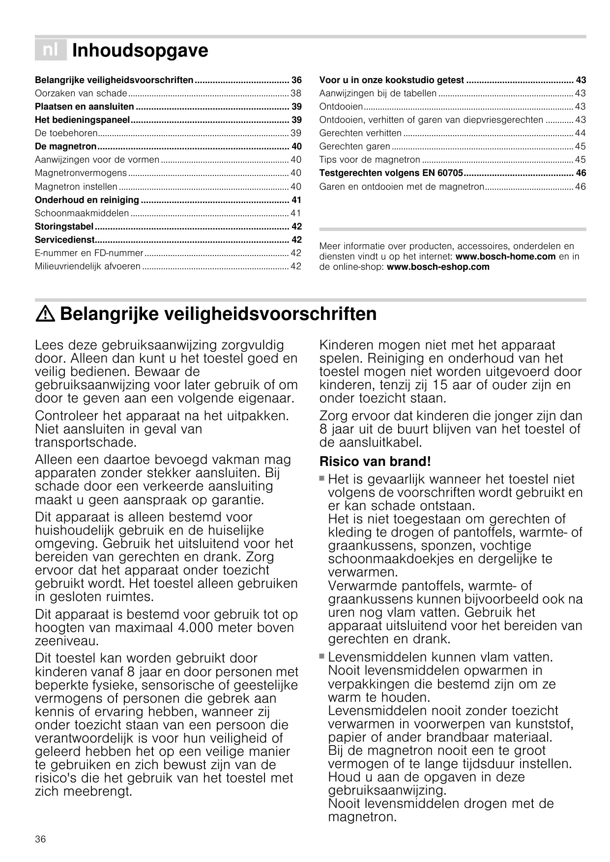 Produktinfo Meer informatie over producten, accessoires, onderdelen en diensten vindt u op het internet: www.bosch-home.com en in de online-shop: www.bosch-eshop.com