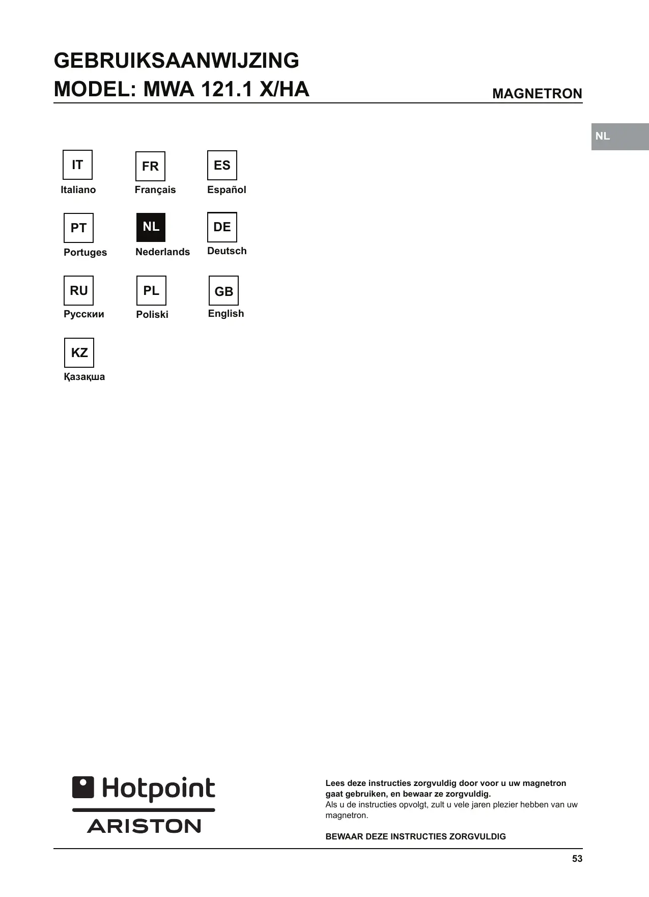 GEBRUIKSAANWIJZING MP796IXHA HOTPOINT