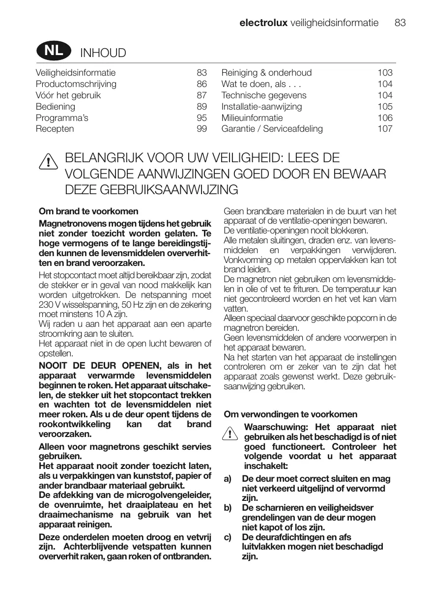 GEBRUIKSAANWIJZING MO317GXE ELECTROLUX