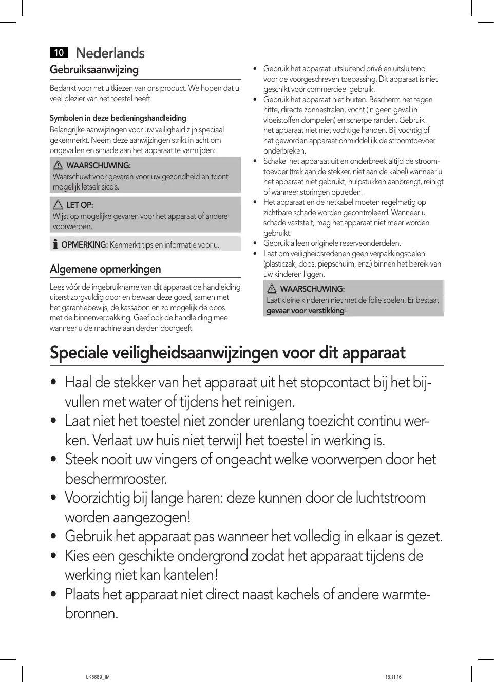 - Laat Niet het toestel Niet zonder urenlang toezicht continu werkken. Verlaat uwuis Niet terwijl het toestel in werkung is.
