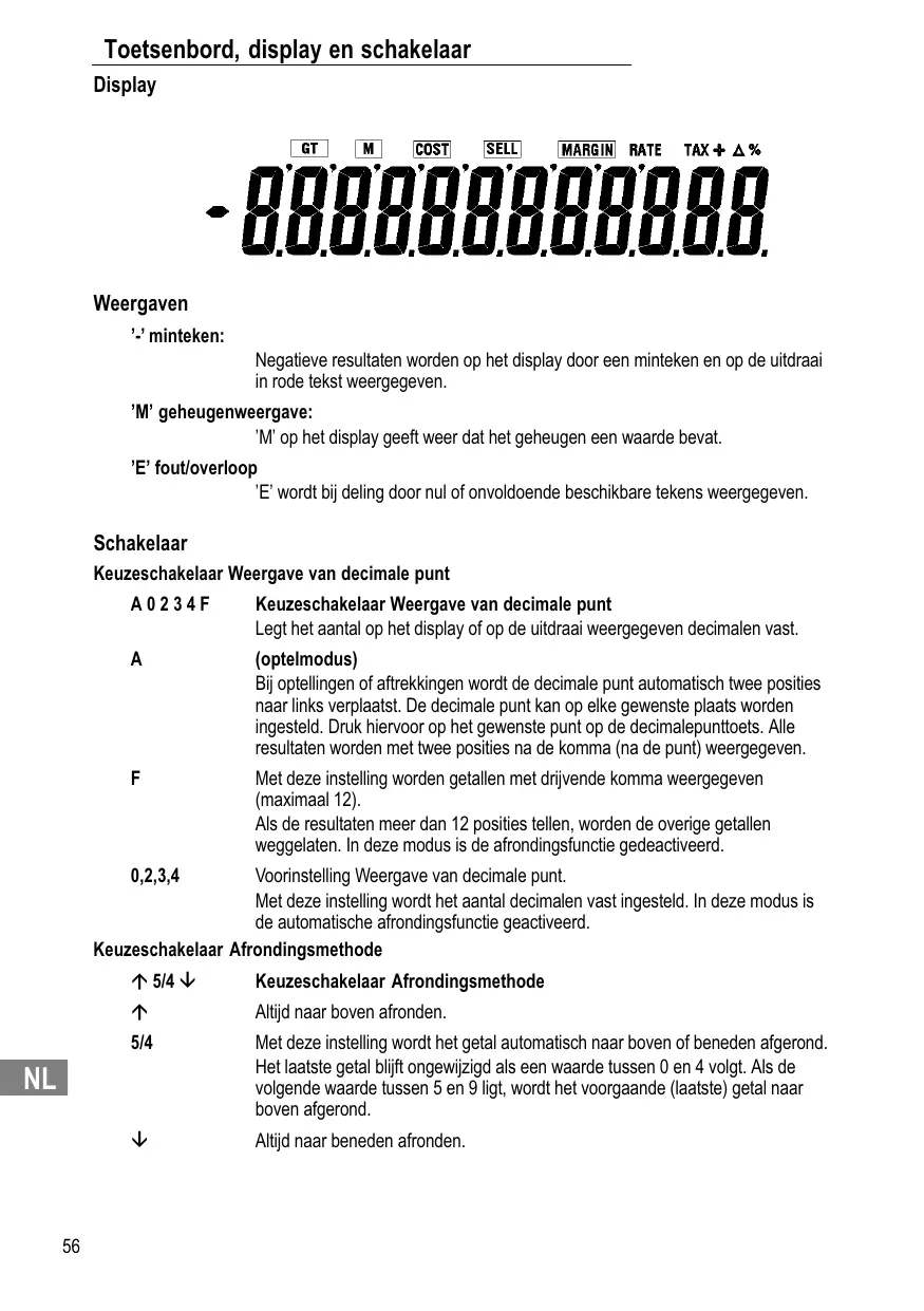 En caso de adiciones o sustracciones se desplaza el punto decimal automáticamente dos dígitos a la izquierda. También es posible ajustar el punto decimal en cualquier posición. Pulse la tecla de punto decimal en el punto deseado. Todos los resultados se mostrarán con dos decimales (detrás del punto).