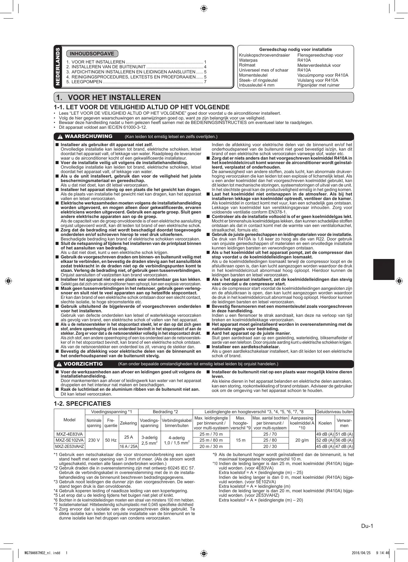 GEBRUIKSAANWIJZING MXZ-5E102VA MITSUBISHI