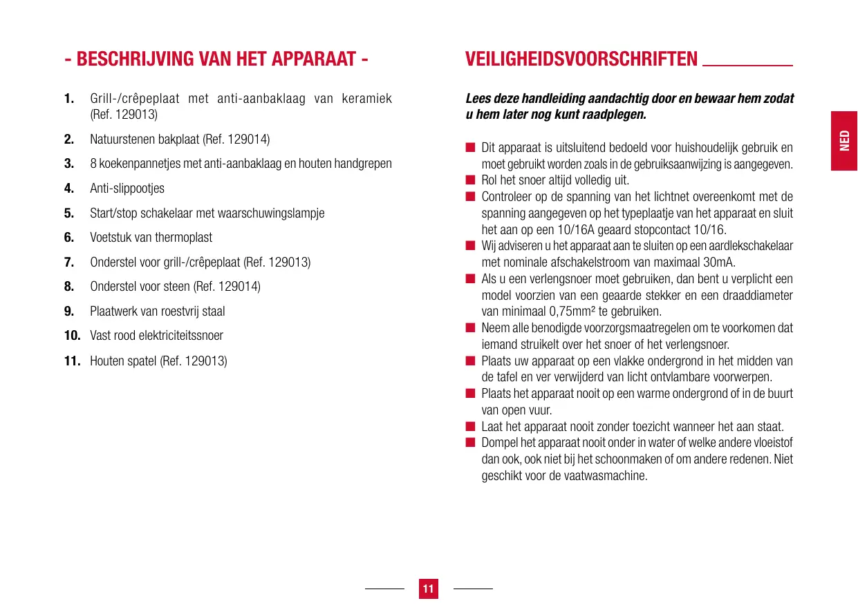 Grill-/crêpeplaat met anti-aanbaklaag van keramiek (Ref. 129013) Lees deze handleiding aandachtig door en bewaar hem zodat u hem later nog kunt raadplegen.