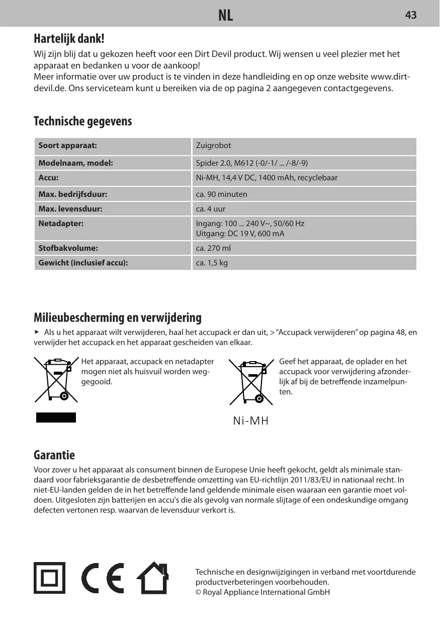 GEBRUIKSAANWIJZING SPIDER 2,0 TRACKER M613 DIRT DEVIL