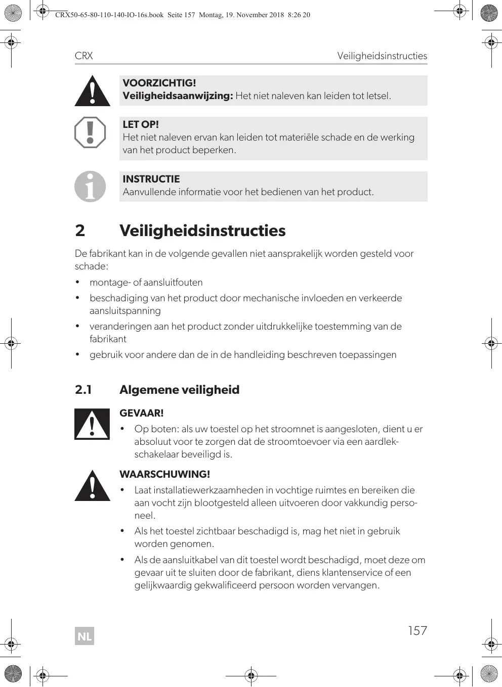 CRX Lees deze handleiding voor de montage en de ingebruikname zorgvuldig door en bewaar hem. Geef de handleiding bij het doorgeven van het product aan de gebruiker.