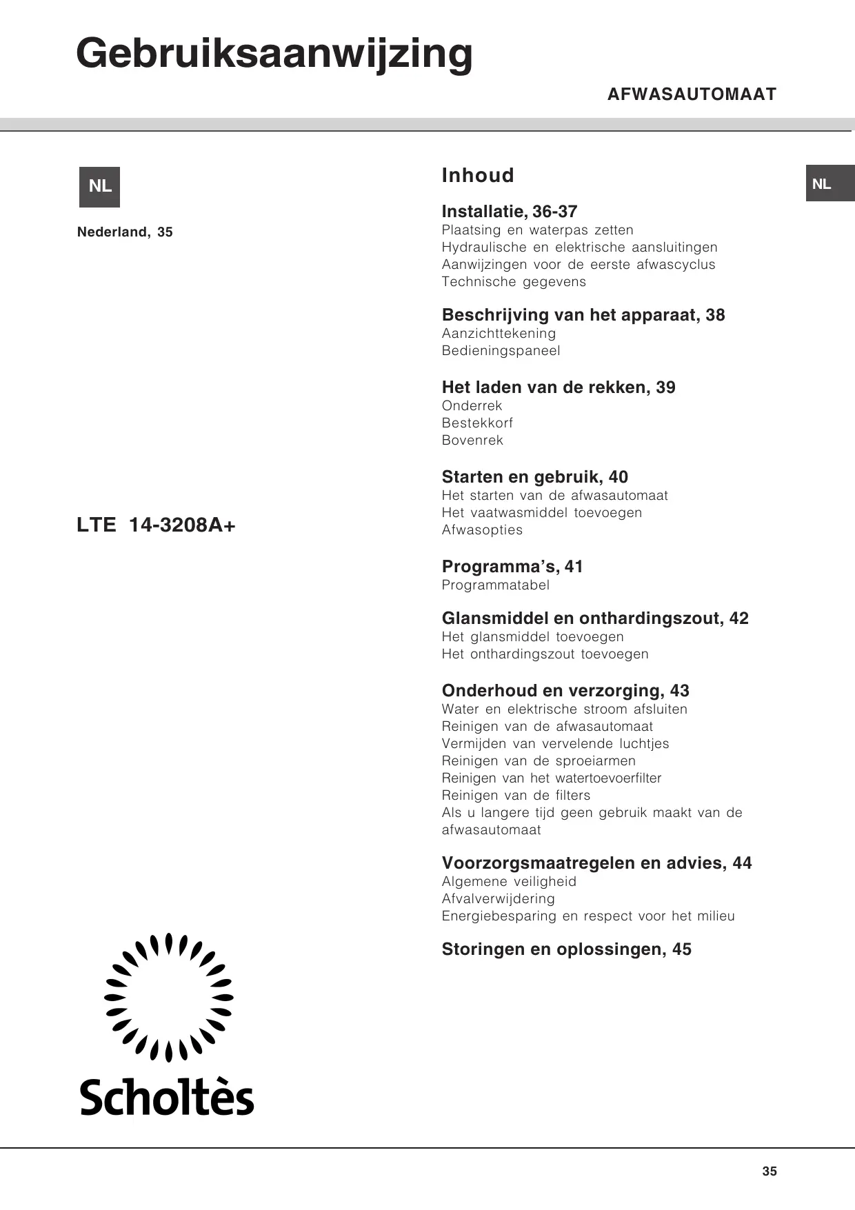 GEBRUIKSAANWIJZING LTE 14-3208 A+ SCHOLTES