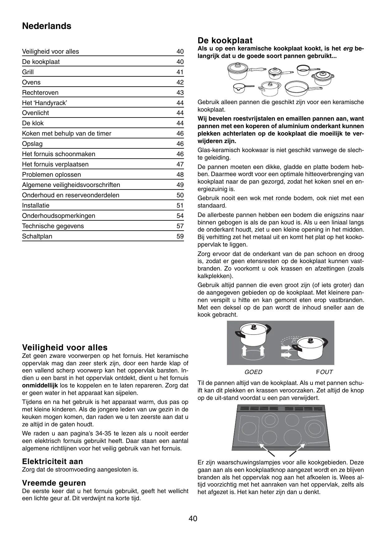 Sécurité avant tout Ne posez aucun objet lourd sur la cuisinière. Même si la surface en céramique est très résistante, un impact violent ou un objet contondant tombant accidentellement dessus risque de la fissurer. Dès qu’une fissure est visible sur la surface, mettez immédiatement la cuisinière hors tension et faites-la réparer. Veillez à prévenir toute infiltration d’eau dans la cuisinière. La cuisinière est chaude pendant et après l’utilisation. Il importe donc de faire preuve de vigilance en présence d’enfants en bas âge. Si les plus jeunes enfants de votre famille viennent dans la cuisine, il est fortement recommandé de ne les laisser sans surveillance à aucun moment. Si vous n’avez jamais utilisé de cuisinière électrique, nous vous conseillons de lire les pages 14-15. Nous y donnons des conseils de base en vue d’une utilisation sûre d’une cuisinière.