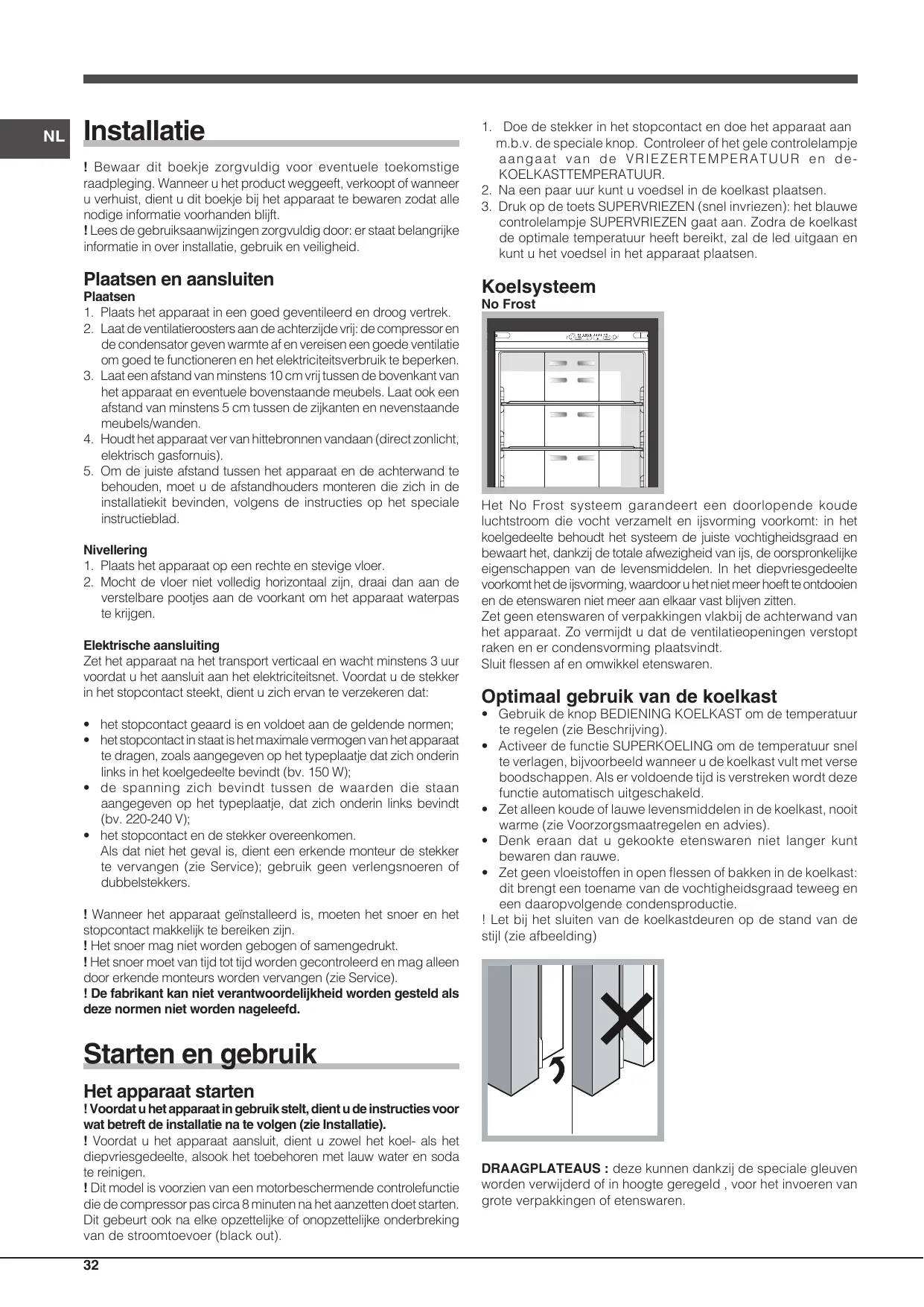 • Pour introduire ou sortir les aliments, n’ouvrez les portes de l’appareil que le temps strictement nécessaire. Chaque ouverture de porte cause une considérable dépense d’énergie. • Ne chargez pas trop votre appareil: pour une bonne conservation des aliments, le froid doit pouvoir circuler librement. Si la circulation est entravée, le compresseur travaillera en permanence. • N’introduisez pas d’aliments chauds : ces derniers font monter la température intérieure ce qui oblige le compresseur à travailler beaucoup plus en gaspillant un tas d’électricité.