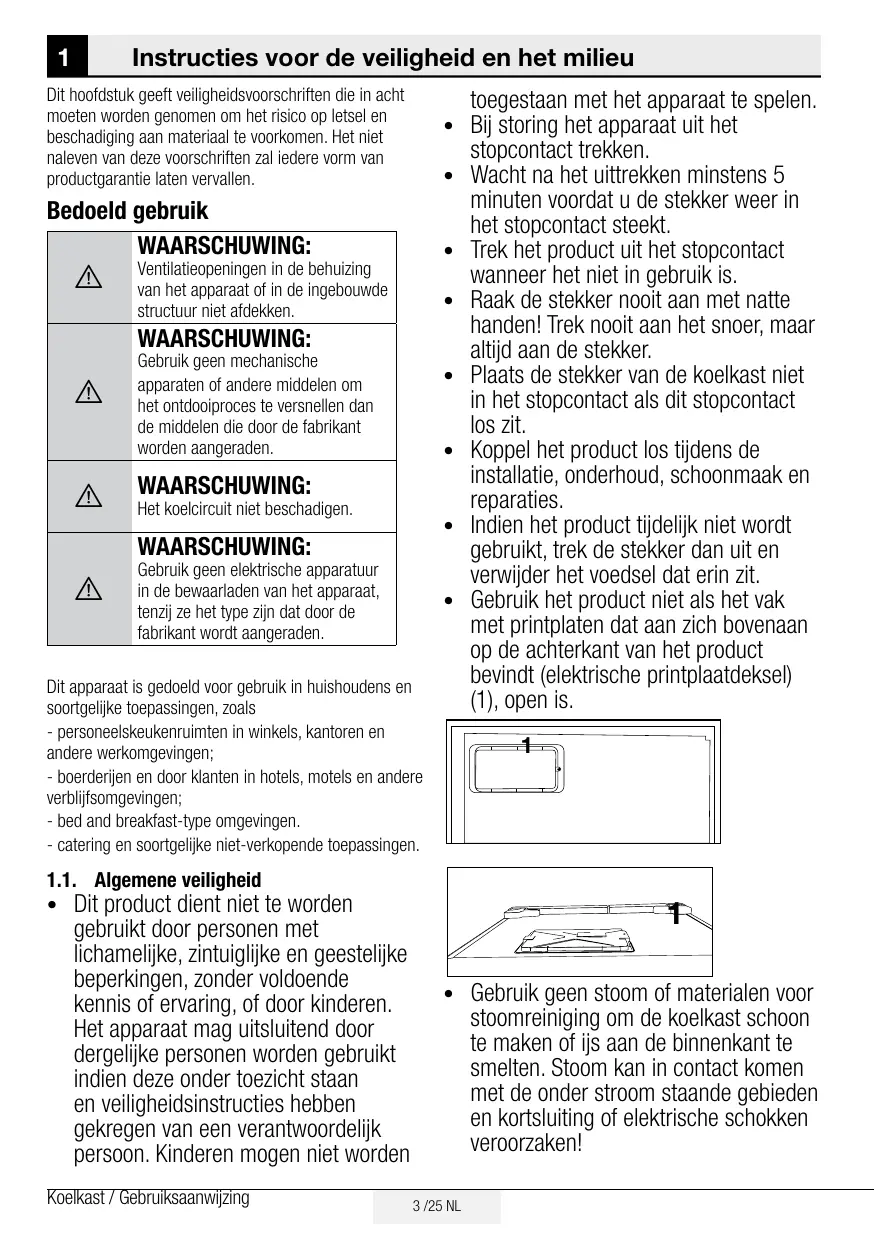 | ▲ | WAARSCHUWING: Gebruik geen mechanische apparaten of andere middelen om het ontdooiprocesse te versnellen dan de middelen die door de fabrikant worden aangeraden. |