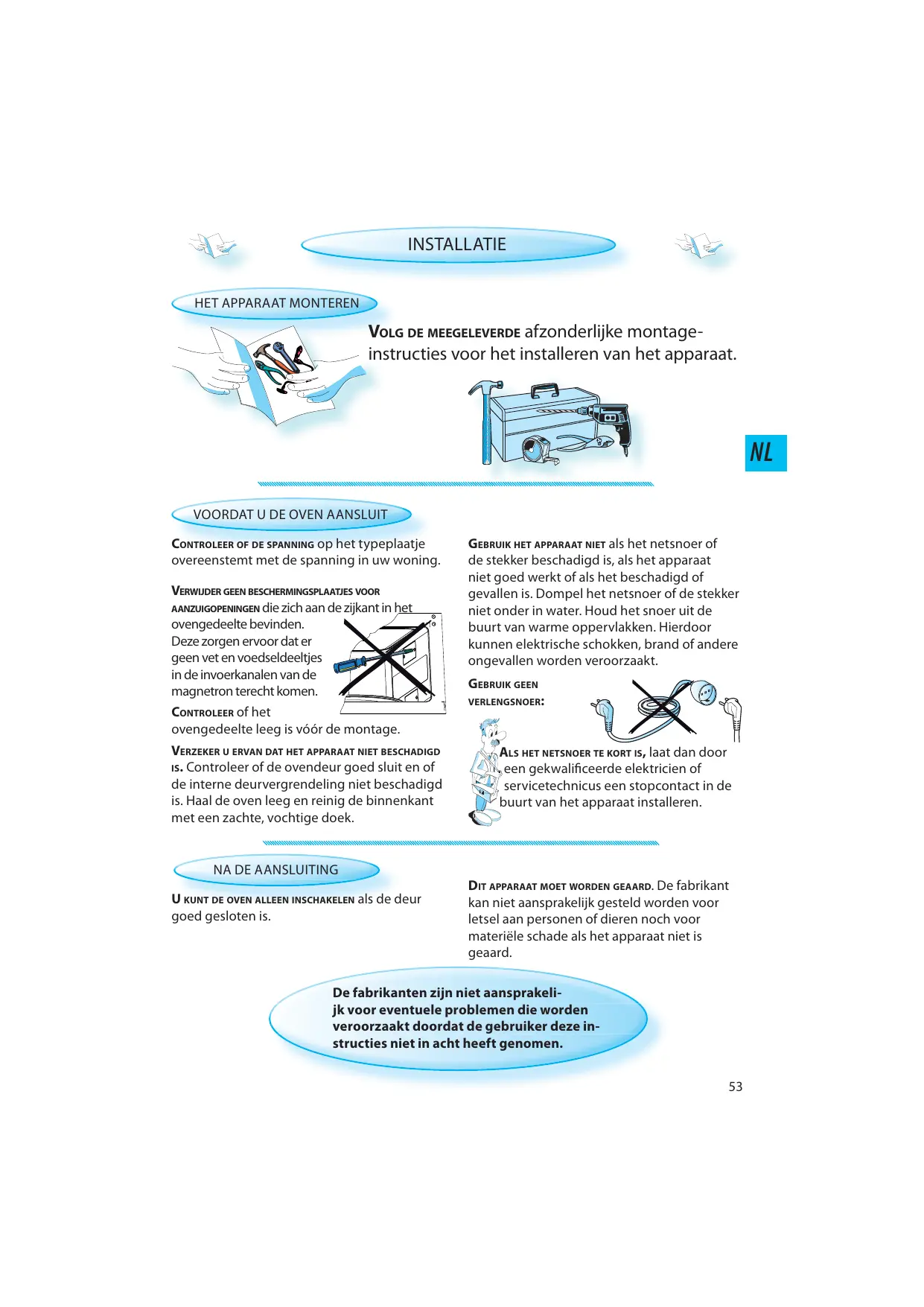 Le fabricant décline toute responsabilité si l'utilisateur ne respecte pas ces instructions.