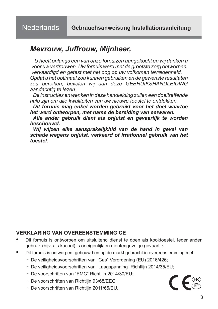 U heeft onlangs een van onderne fornuizen aangekocht en wij danken u voor uw vertrouwen. Uw fornuis werd met de grootste zorg ontworpen, vervaardigd en getest met het oog op uw volkommen tevredenheid.