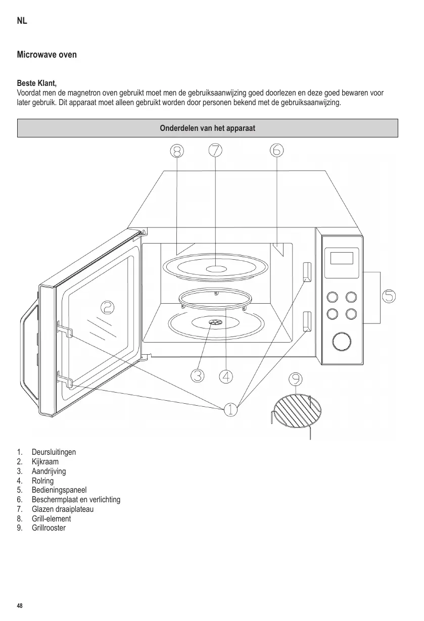 Tableau de commande Couvercle de protection et éclairage Plateau tournant en verre Élément chauffant de gril Grille