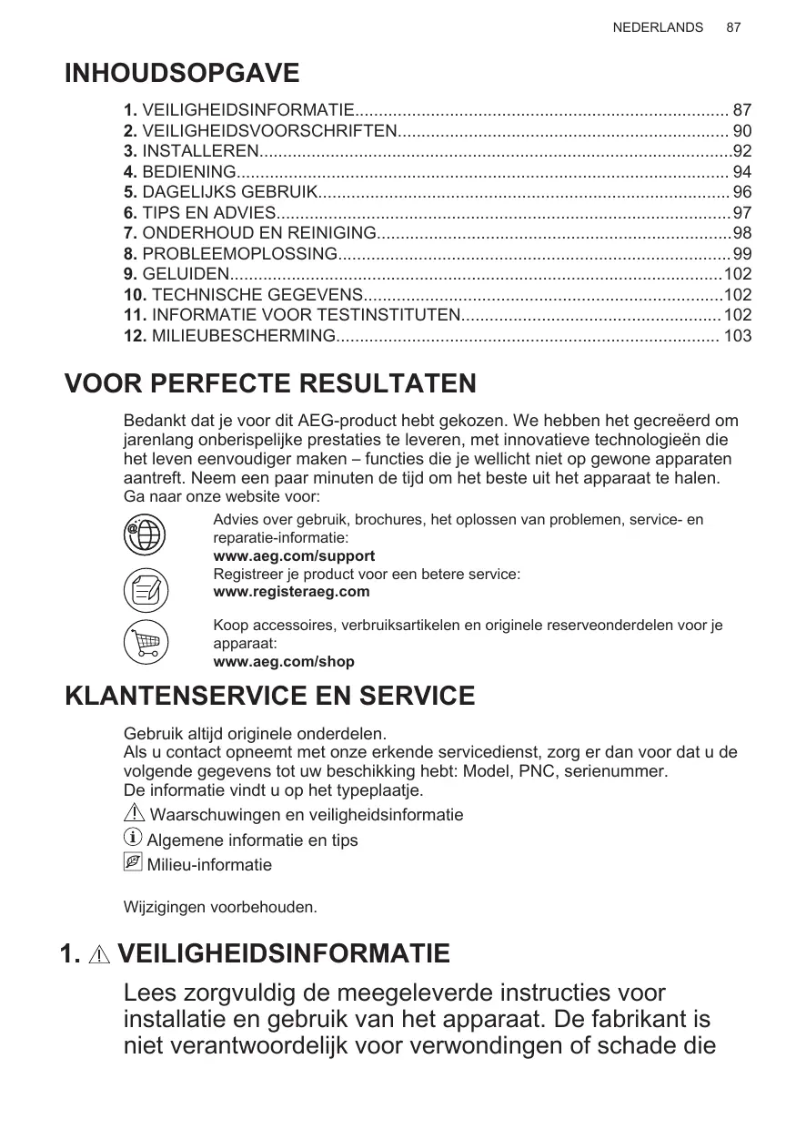 Enregistrer votre produit pour un meilleur service : www.registeraeg.com Acheter des accessoires, consommables et pièces de rechange d’origine pour votre appareil : www.aeg.com/shop