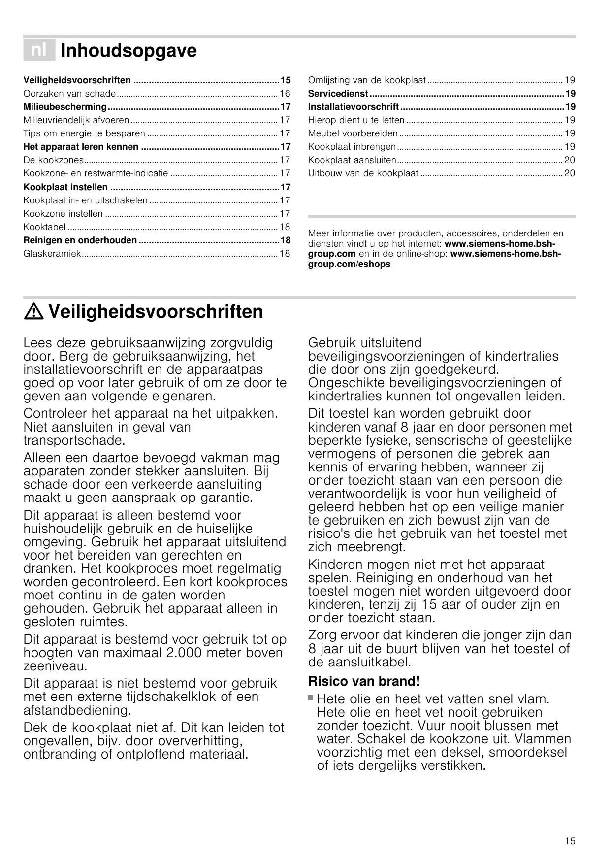 Meer informatatie over producten, accessoires, onderdelen en diensten vindt u op het internet: www.siemens-home.bsh-group.com en in de online-shop: www.siemens-home.bsh-group.com/eshops