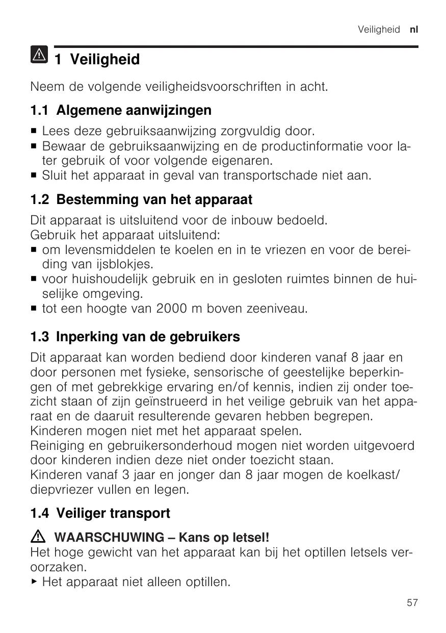 1.2 Bestemming van het apparaat 57