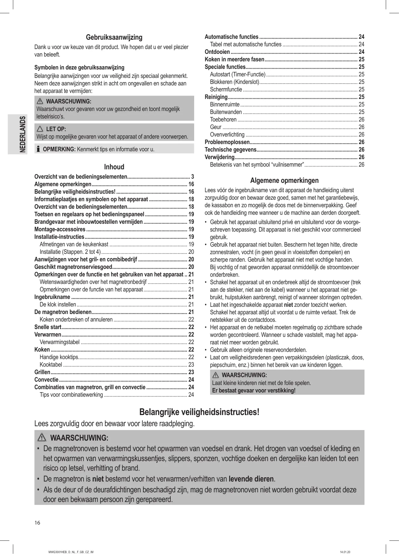 - Belangrijke veiligheidsinstructies! p. 16