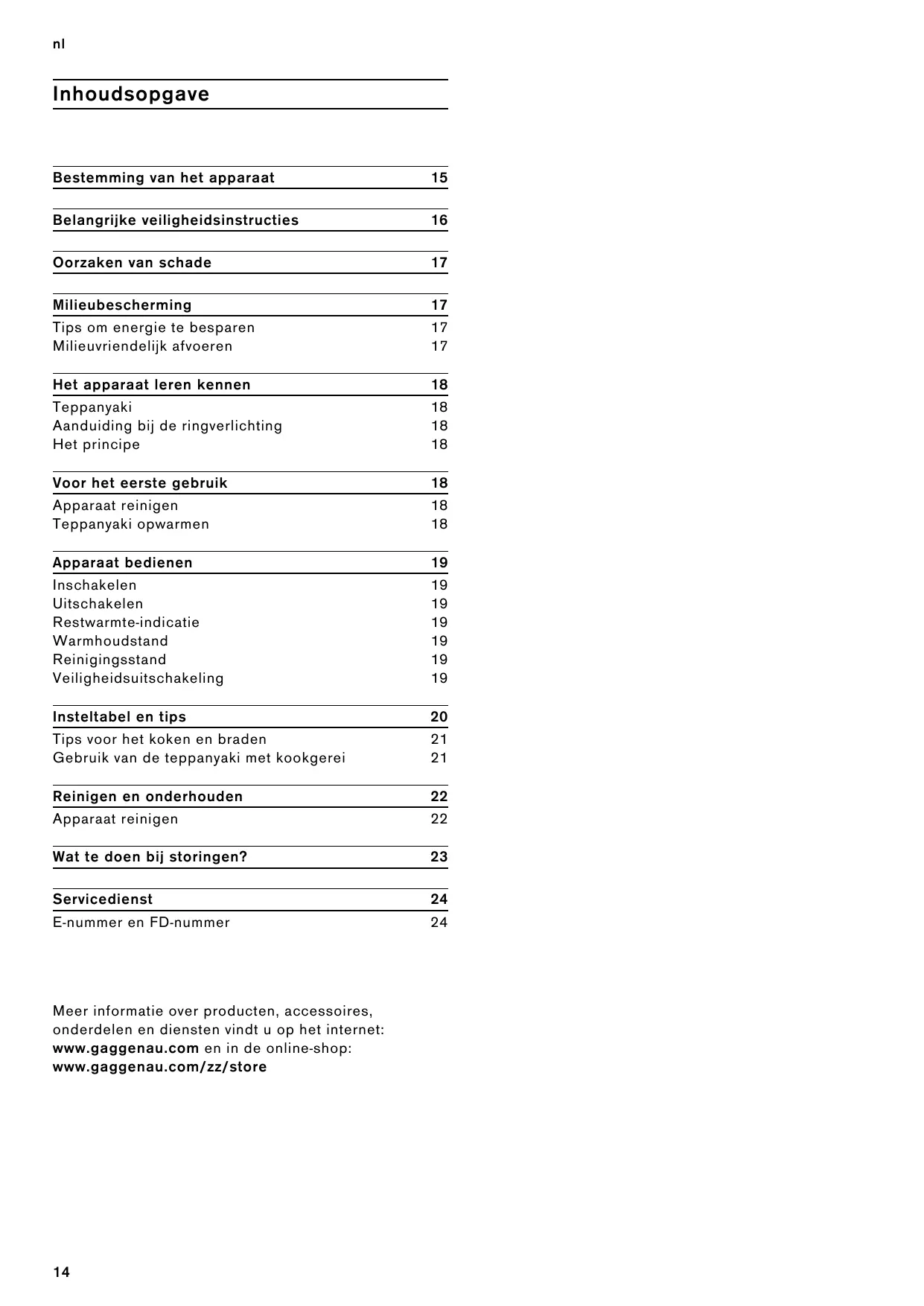 Meer informatatie over producten, accessoires, onderdelen en Diensten vindt u op het internet: www.gaggenau.com en in de online-shop: www.gaggenau.com/zz/store